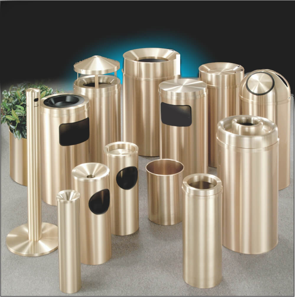 Satin Aluminum with Satin Brass finish Trash Receptacles